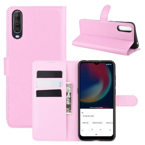 Funda Protectora Wiko View 4/4 Lite Litchi Texture con Tapa Horizontal, Soporte, Ranuras para Tarjetas y Billetera (Rosa)