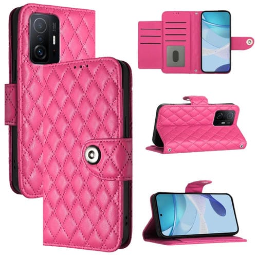 Para Xiaomi 11T / 11T Pro Funda de Cuero con Tapa con Textura Rómbica y Cordón (Rojo Rosa)