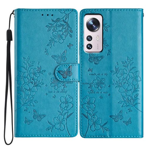 Para Xiaomi 12 Lite Funda de Cuero para Teléfono con Mariposas y Flores (Azul)