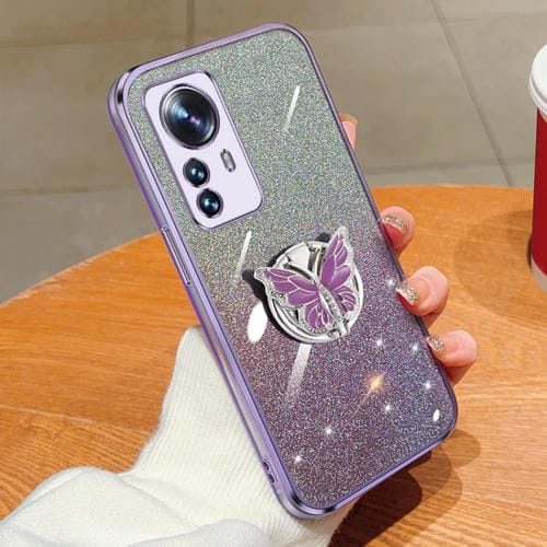 Para Xiaomi 12 Pro Estuche para Teléfono de TPU con Soporte de Mariposa con Brillo Degradado Plateado (Púrpura)
