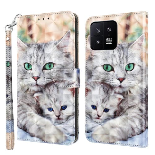 Para Xiaomi 13 Estuche para Teléfono de Cuero con Patrón Pintado En 3D (Dos Gatos Amorosos)