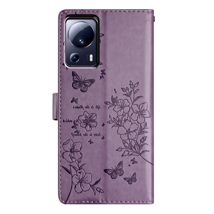 Para Xiaomi 13 Lite Funda de Cuero para Teléfono con Mariposas y Flores (Púrpura)