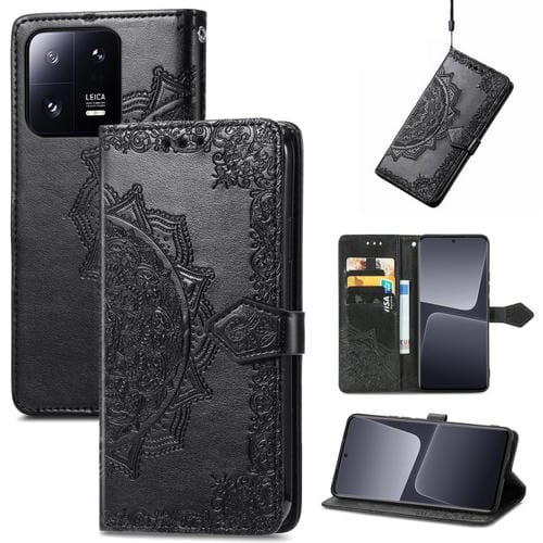 Para Xiaomi 13 Mandala Flower Estuche para Teléfono de Cuero En Relieve (Negro)