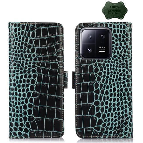 Para Xiaomi 13 Pro Estuche para Teléfono de Cuero de Vaca con Capa Superior de Cocodrilo (Verde)