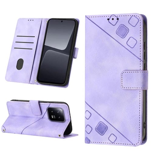Para Xiaomi 13 Pro Estuche para Teléfono de Cuero En Relieve con Tacto de Piel (Púrpura Claro)