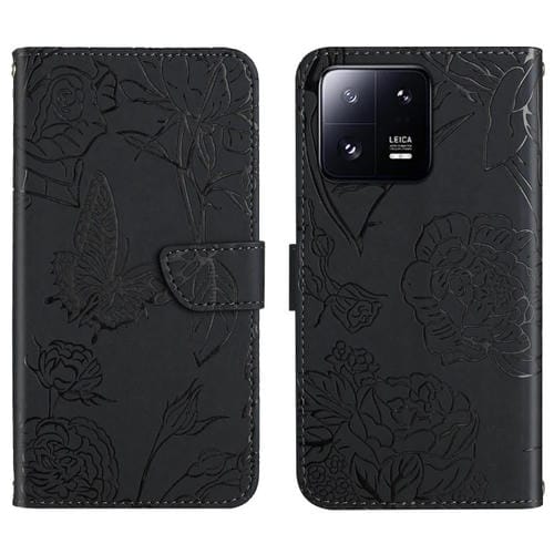 Para Xiaomi 13 Pro Ht03 Skin Feel Butterfly Funda de Cuero con Tapa En Relieve para Teléfono (Negro)