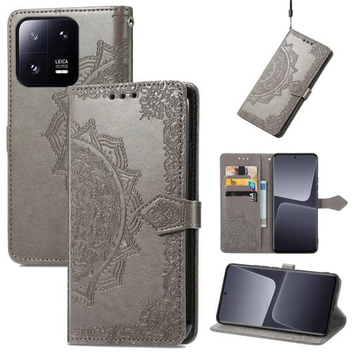 Para Xiaomi 13 Pro Mandala Flower Estuche para Teléfono de Cuero En Relieve (Gris)