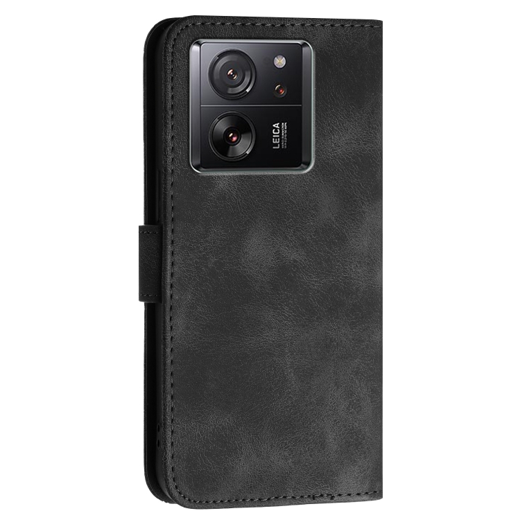 Para Xiaomi 13T Yx0080 Grid Butterfly Patrón En Relieve Funda de Cuero con Tapa para Teléfono con Cordón (Negro)