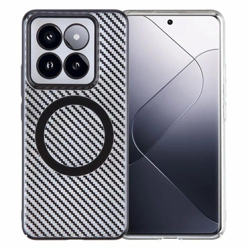 Para Xiaomi 14 6D Caja De Teléfono Para Pc Magsafe Transparente De Fibra De Carbono Plateada (Negro Estrellado)