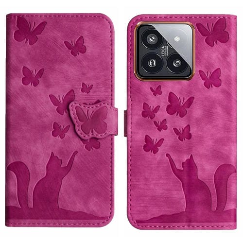 Para Xiaomi 14 Butterfly Cat Embossing Flip Funda De Cuero Para Teléfono (Rosa)