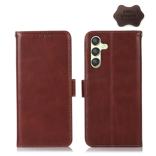 Para Xiaomi 14 Funda Magnética Para Teléfono Rfid Con Textura De Caballo Loco De Cuero Genuino (Marrón)