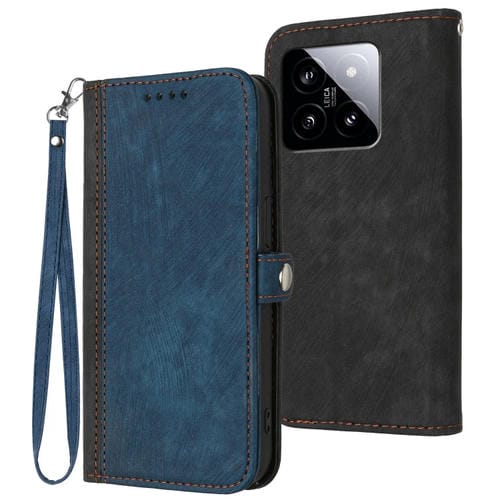 Para Xiaomi 14 Hebilla Lateral Doble Pliegue Correa De Mano Funda De Cuero Para Teléfono (Azul Real)