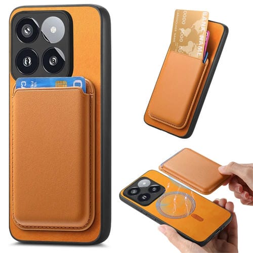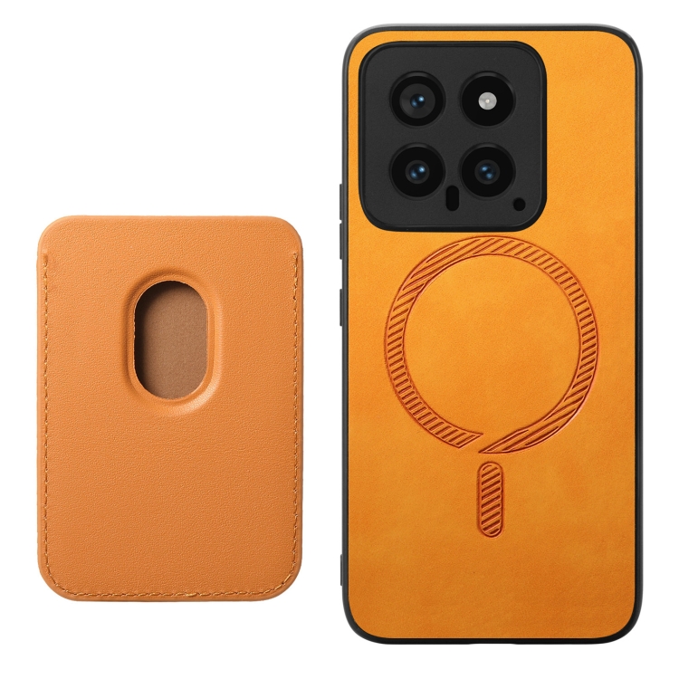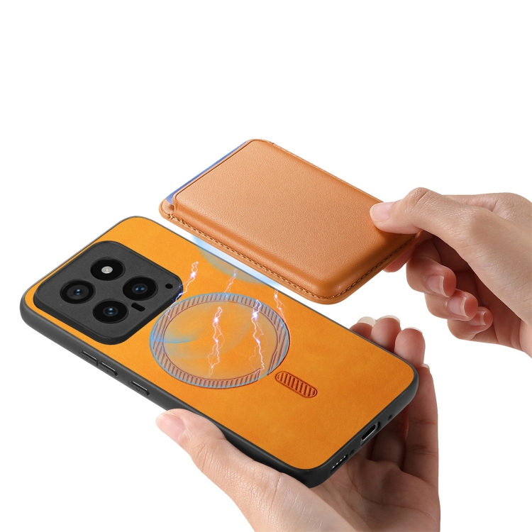 Para Xiaomi 14 Pro 5G Retro Magsafe Card Bag Pu Funda Para Teléfono Con Contraportada (Amarillo)