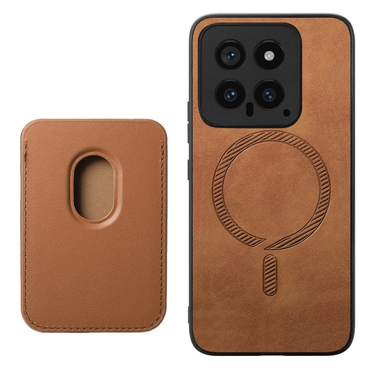 Para Xiaomi 14 Pro 5G Retro Magsafe Card Bag Pu Funda Para Teléfono Con Contraportada (Marrón)