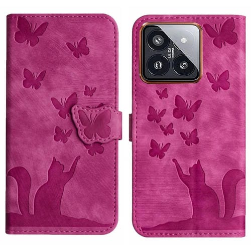 Para Xiaomi 14 Pro Butterfly Cat Embossing Flip Funda De Cuero Para Teléfono (Rosa)
