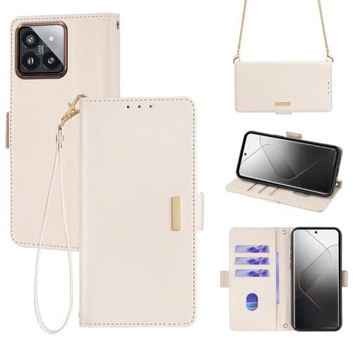 Para Xiaomi 14 Pro Funda De Cuero Para Teléfono Con Cadena Cruzada (Blanco)