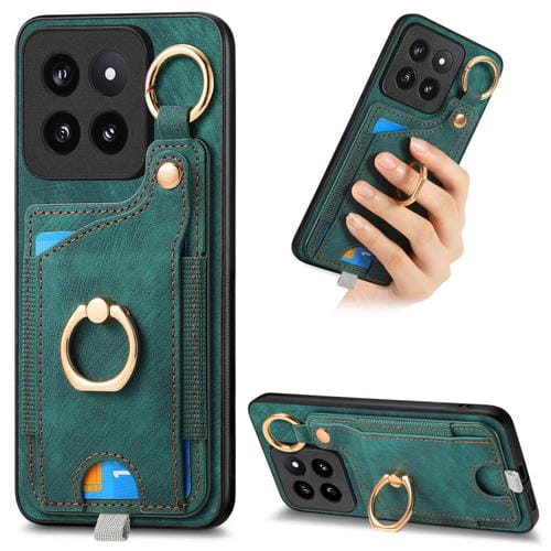 Para Xiaomi 14 Pro Funda Para Teléfono Con Bolsa Para Tarjeta Con Anillo Y Sensación De Piel Retro Con Lazo Para Colgar (Verde)