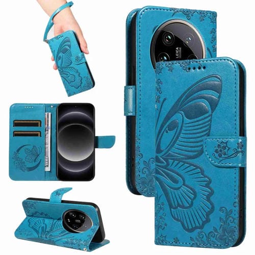 Para Xiaomi 14 Ultra Swallowtail Butterfly Funda De Cuero Para Teléfono En Relieve (Azul)