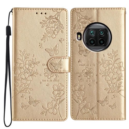 Para Xiaomi Mi 10T Lite 5G Funda de Cuero para Teléfono con Mariposas y Flores (Dorado)