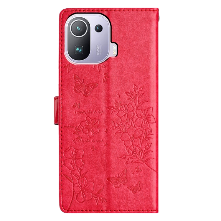 Para Xiaomi Mi 11 Pro Funda de Cuero para Teléfono con Mariposas y Flores (Rojo)