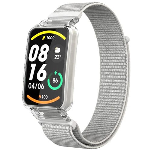 Estuche Protector integrado para Xiaomi Mi Band 7 Pro + Banda con Lazo de Nylon (Plata)
