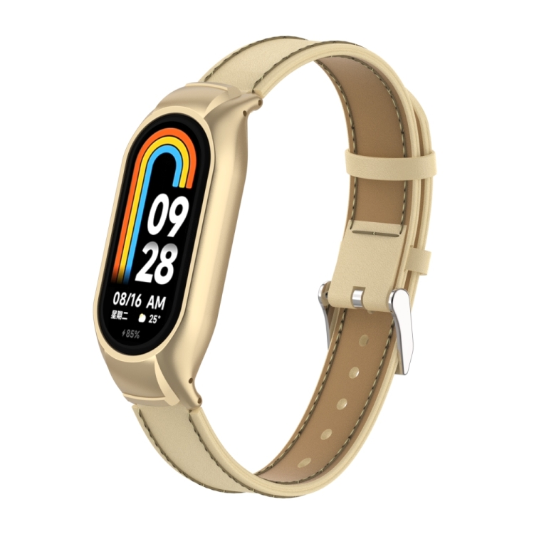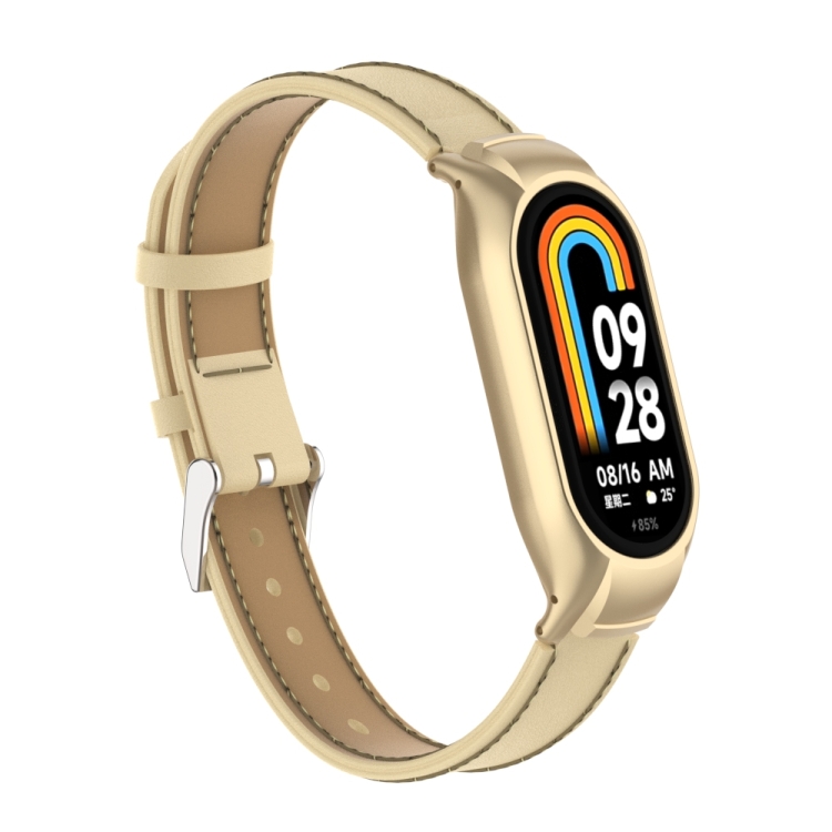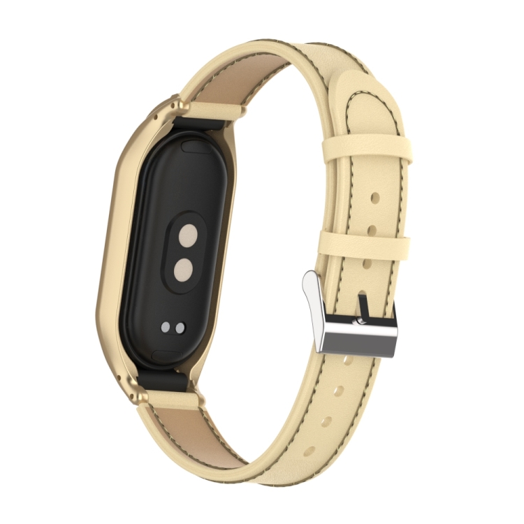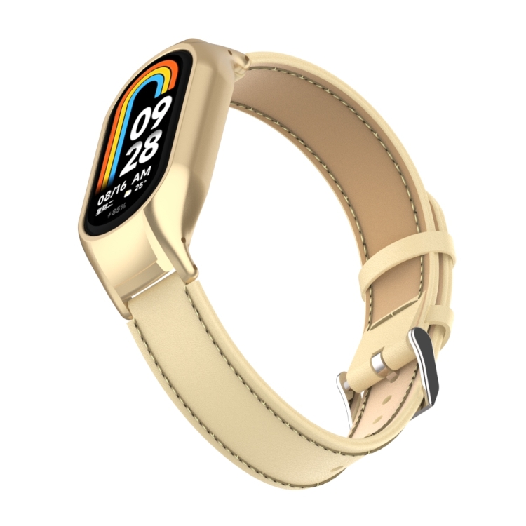 Estuche de Metal + Correa de Cuero para Xiaomi Mi Band 8 (Champagne)