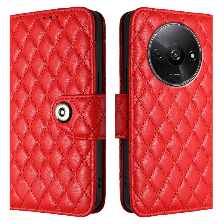 Para Xiaomi Poco C61 Funda para Teléfono de Cuero con Tapa con Textura Rómbica y Cordón (Rojo)