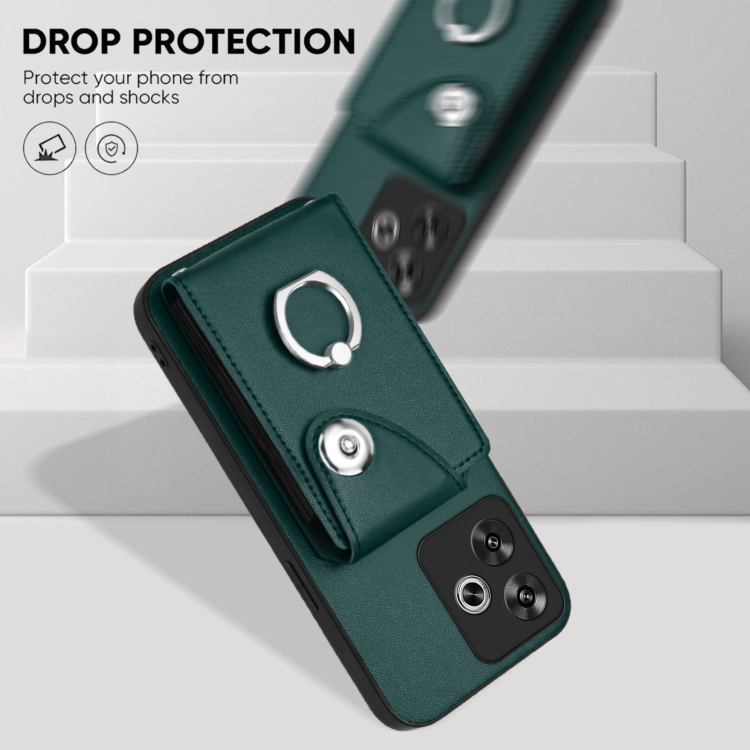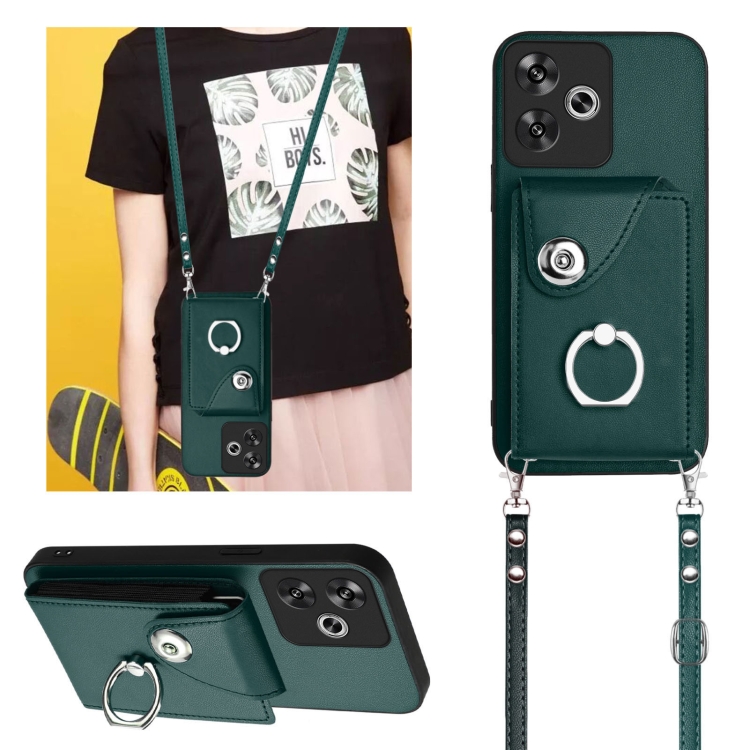 Para Xiaomi Poco F6 5G India Bolsa para Tarjeta de Órgano Funda para Teléfono con Soporte para Anillo y Cordón Largo (Verde)