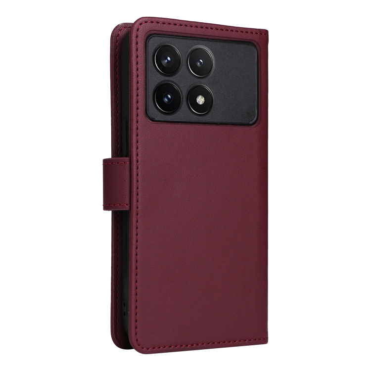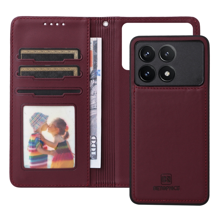 Para Xiaomi Poco F6 Pro Betopnice Bn-005 2 En 1 Funda de Teléfono de Cuero Genuino de Imitación Desmontable (Rojo Vino)