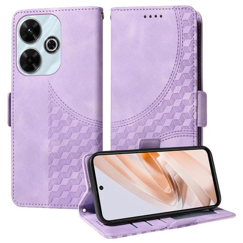 Para Xiaomi Poco M6 4G Funda de Teléfono de Cuero Estrellado con Rombos En Relieve (Púrpura)
