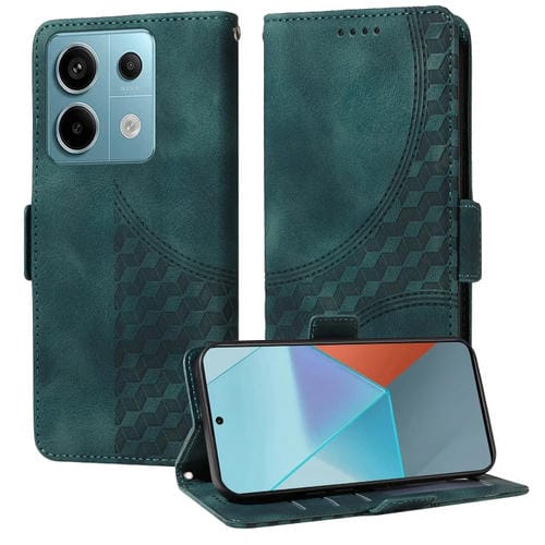 Para Xiaomi Poco X6 Funda para Teléfono de Cuero Estrellado con Rombos En Relieve (Verde)