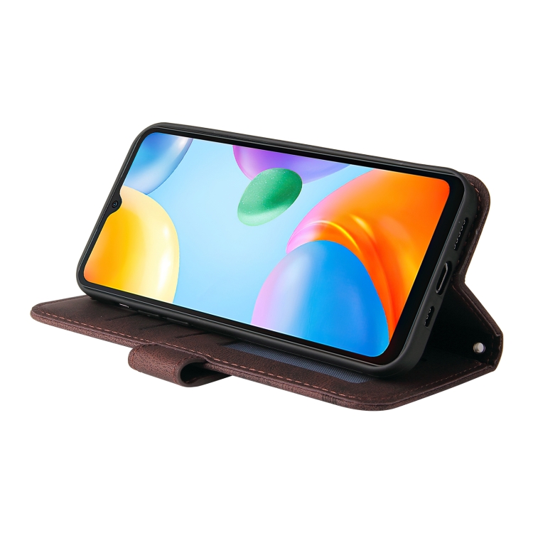 Para Xiaomi Redmi 10C 4G / REDMI 10 India Versión de la India Siente Tree Life Tree Metal Button Funda telefónica de cuero (Marrón)