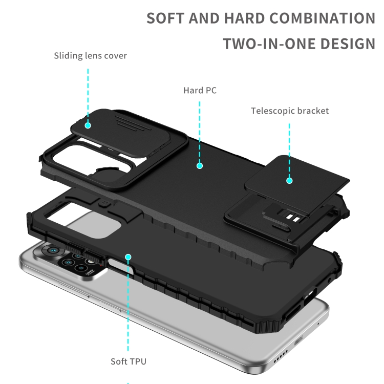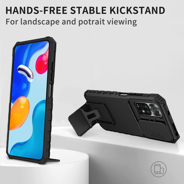 Para Xiaomi Redmi Note 11/11S Global Stereoscopic Holder Sliding Camshield Phone Case (Negro)