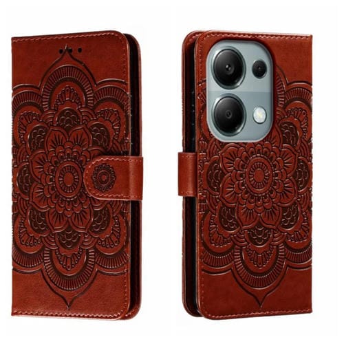 Para Xiaomi Redmi Note 13 Pro 4G Sun Mandala Funda de Cuero para Teléfono con Patrón En Relieve (Marrón)