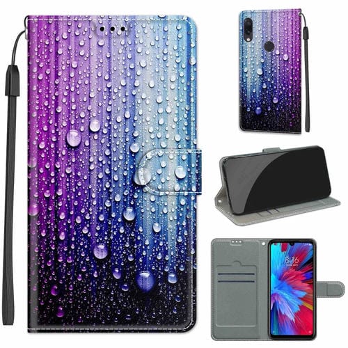 Para Xiaomi Redmi Note 7 Voltaje Dibujo de Color Magnético Cierre Magnético Flip Pu Funda de Cuero con Soporte y Ranuras para Tarjeta (C05 Gotas de Agua Azul Púrpura)