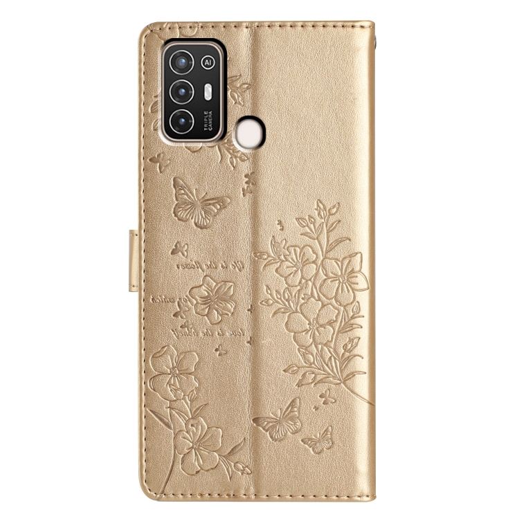 Funda para ZTE Blade A52 de Cuero con Relieve Flor de Amor y Mariposa (Dorado)