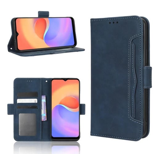 Funda de Cuero para ZTE Blade A52 Lite con Ranuras para Tarjetas y Textura Becerro (Azul)