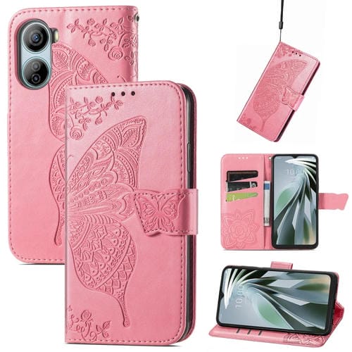 Funda para ZTE Libero 5G Iv de Cuero con Relieve Flor de Amor y Mariposa (Rosa)