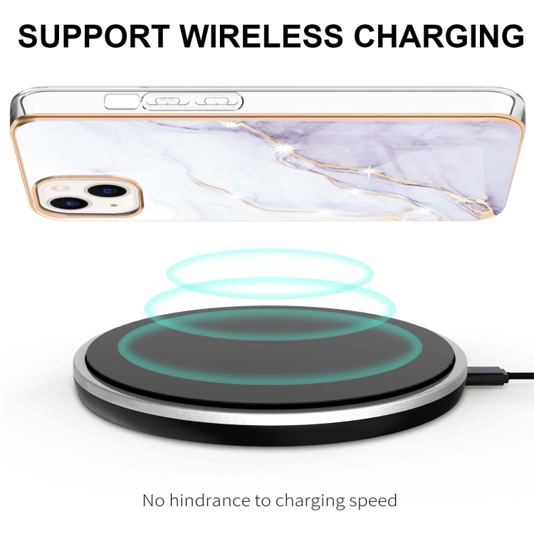 Funda TPU Doble Cara iPhone 15 Patrón Mármol Galvanoplastia a Prueba de Golpes (Blanco)