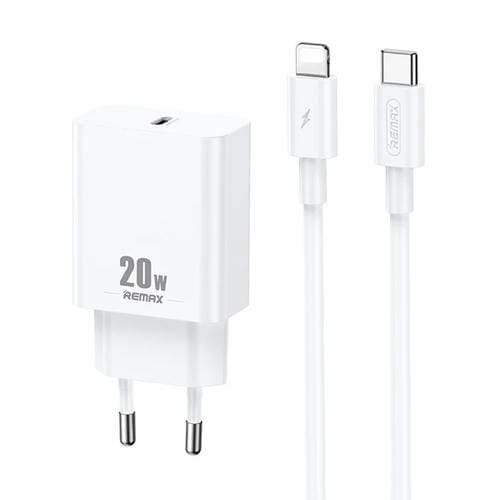 Cargador Remax Rp-U5 Extreme 2 Series 20W PD + Cable USB-C a 8 Pines 1M (Blanco)
