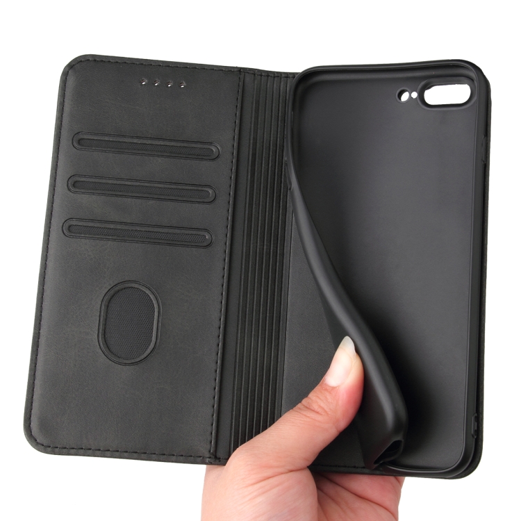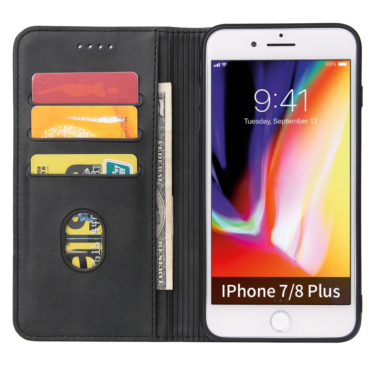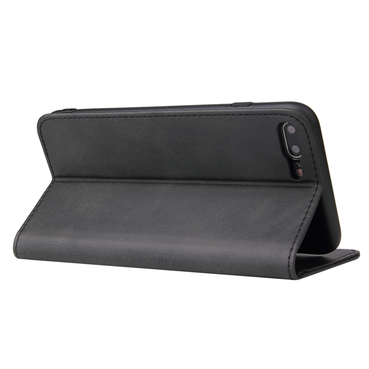 Funda de Cuero Magnético Horizontal Flip con Soporte y Billetera para iPhone 8 Plus / 7 Plus (Negro)