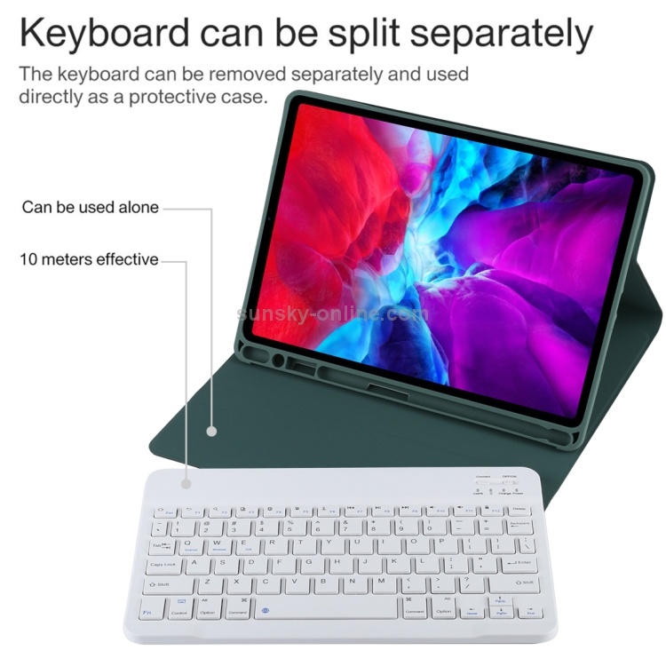 Teclado Bluetooth Tg11B desmontable + Funda Cuero Microfibra para iPad Pro 11 (2020) con Ranura Lápiz y Soporte (Verde Oscuro)