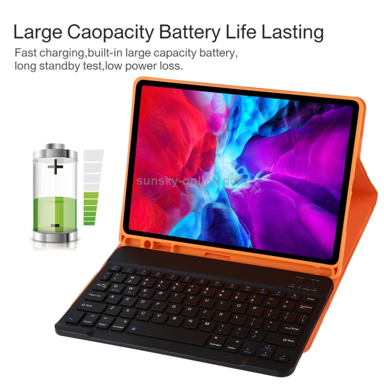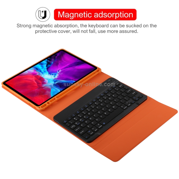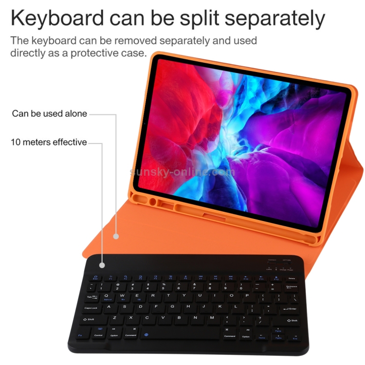 Teclado Bluetooth Tg11B desmontable + Funda Cuero Microfibra para iPad Pro 11 (2020) con Ranura Lápiz y Soporte (Naranja)