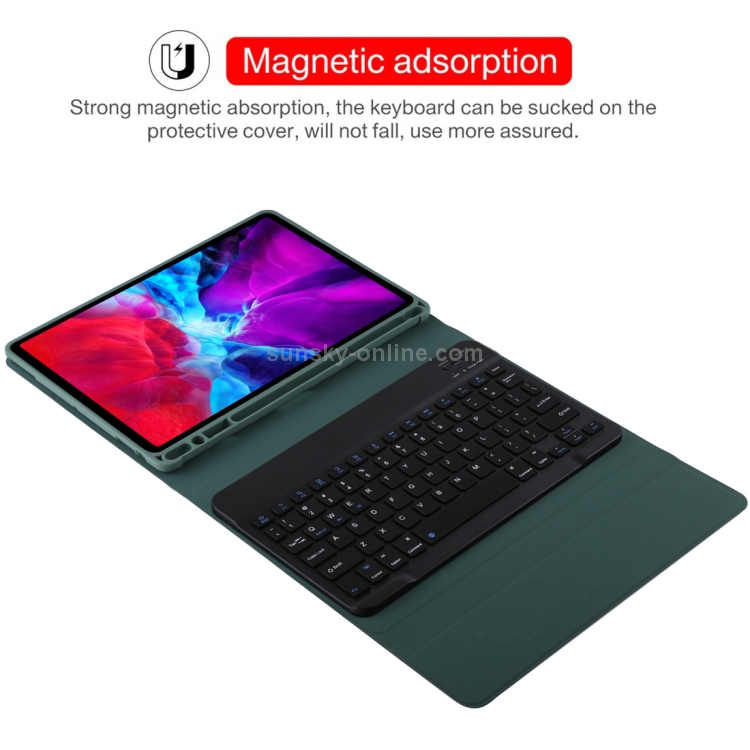 Teclado Bluetooth Tg11B desmontable + Funda cuero microfibra para iPad Pro 11 (2020) con ranura lápiz y soporte (Verde Oscuro)