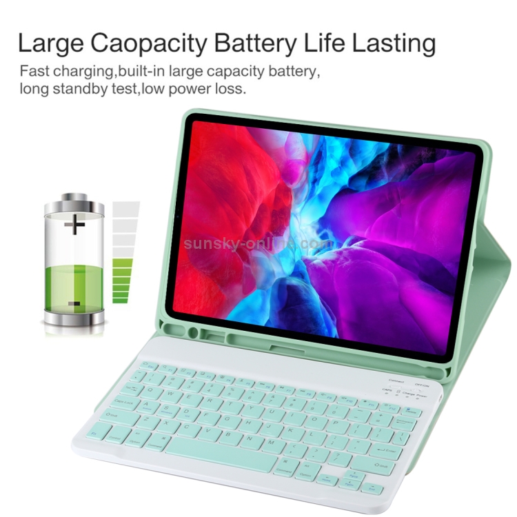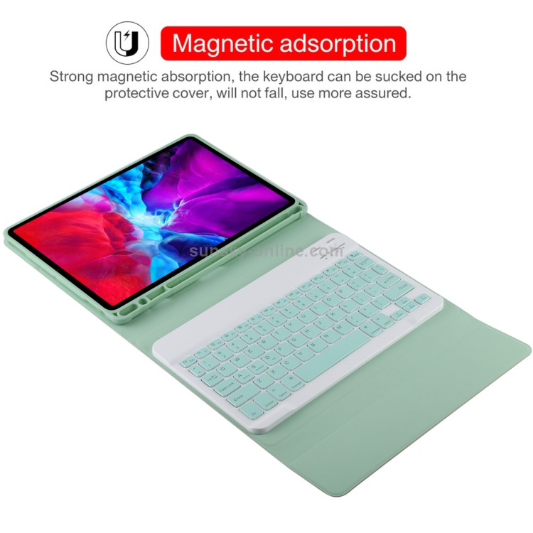 Teclado Bluetooth Tg11B desmontable + Funda Cuero Microfibra para iPad Pro 11 (2020) con Ranura para Lápiz y Soporte (Verde)