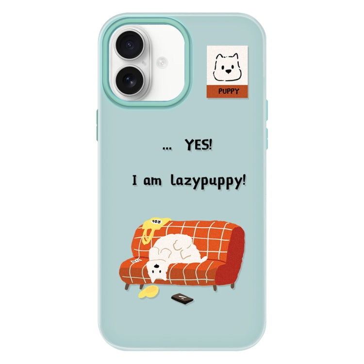 Funda híbrida TPU Policarbonato iPhone 16 Plus Perrito Perezoso (Verde Claro)