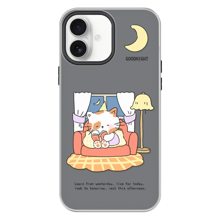 Funda híbrida TPU Policarbonato iPhone 16 Gato Entrenamiento Nocturno (Negro)