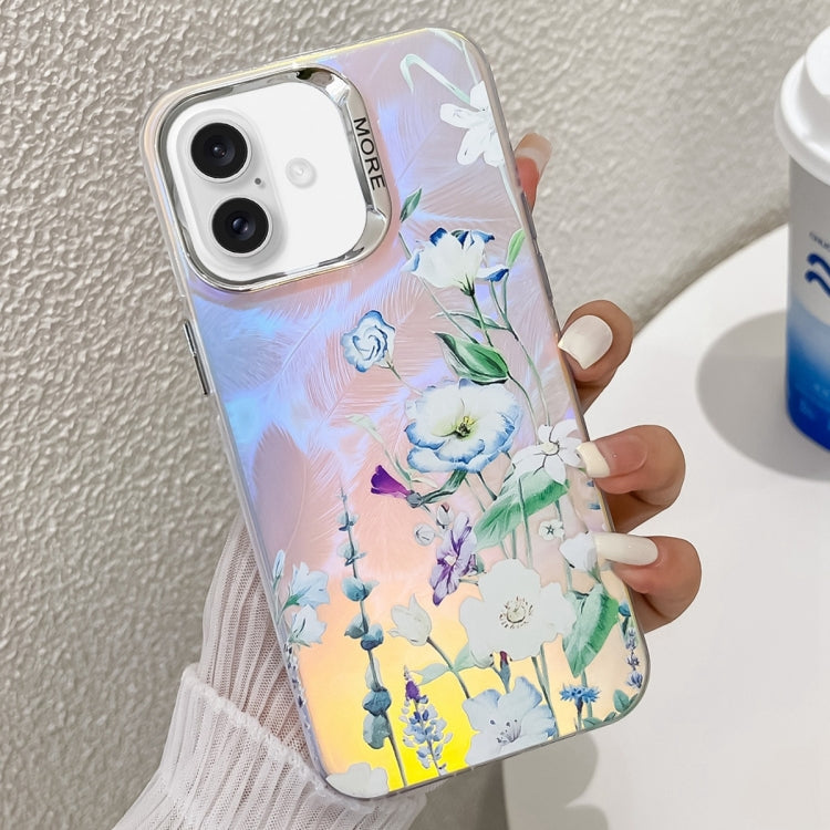 Caja de Teléfono TPU iPhone 16 Plus Textura Flor Láser Galvanizada (Azul)