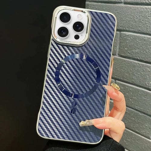 Funda para Teléfono Magsafe Fibra de Carbono Ag para iPhone 16 Pro (Azul)