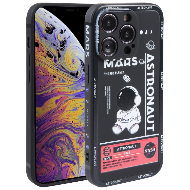 Funda de teléfono para iPhone X Xs patrón Astronauta borde recto silicona (Negro)